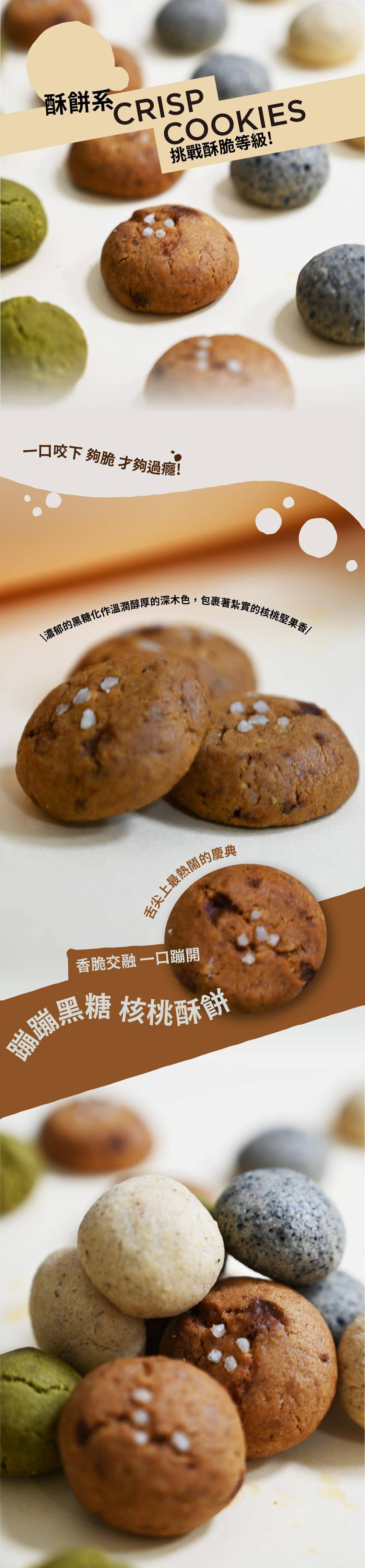 成分:無鹽奶油、黑糖、蛋、低筋麵粉、小蘇打粉、核桃、珍珠糖。